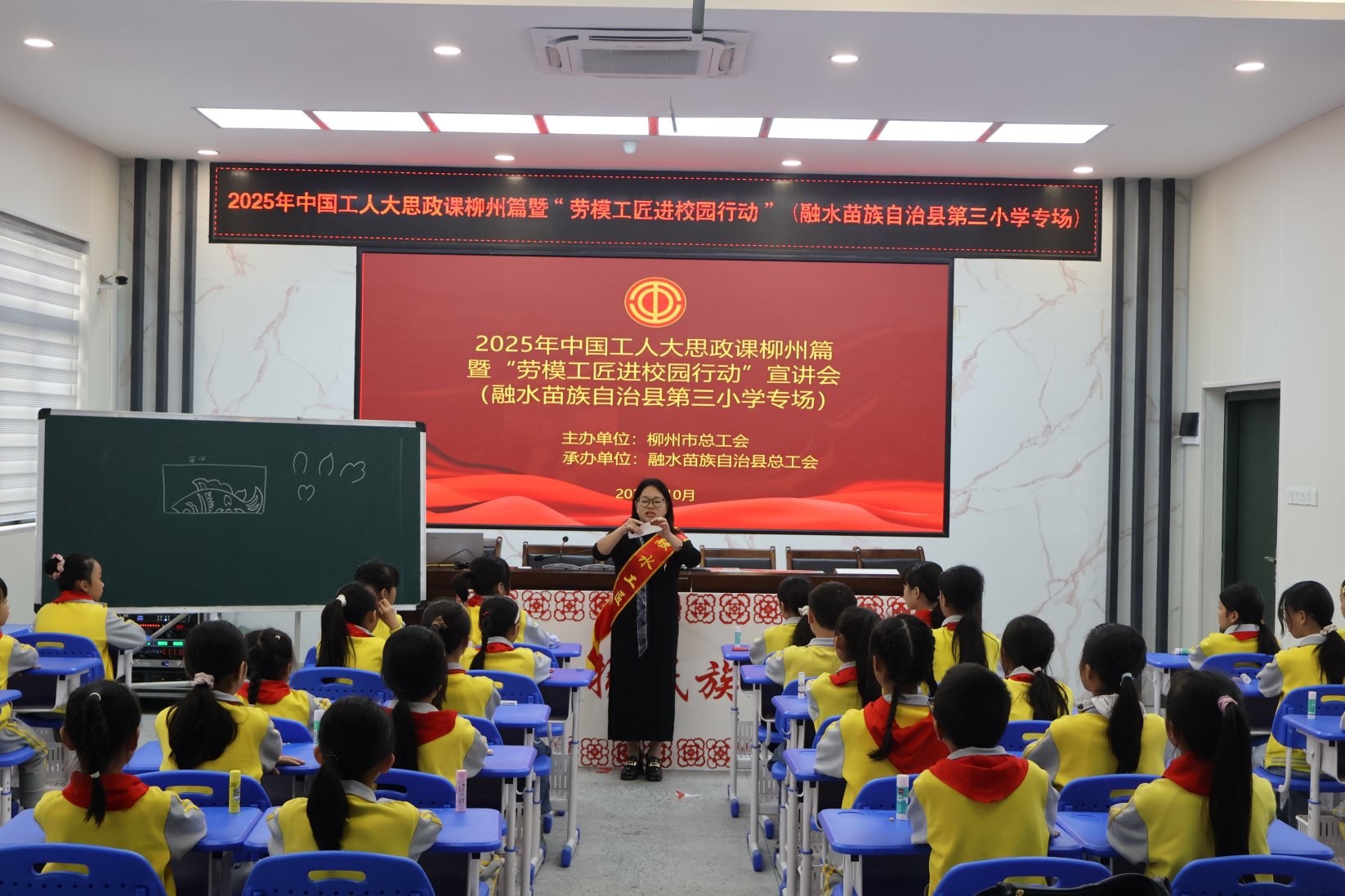 2025年中國工人大思政課柳州篇暨“勞模工匠進(jìn)校園行動”宣講會走進(jìn)融水苗族自治縣第三小學(xué)